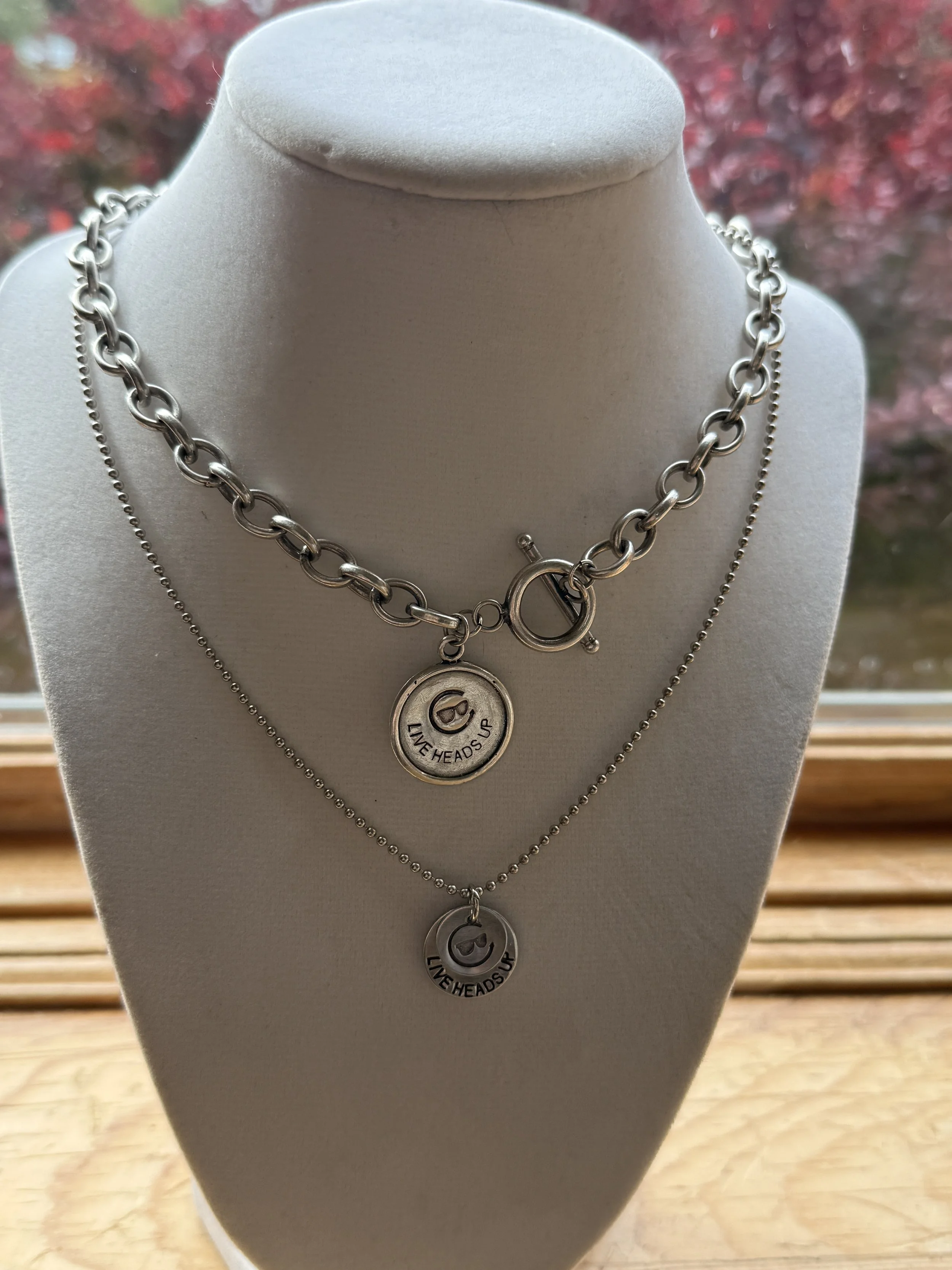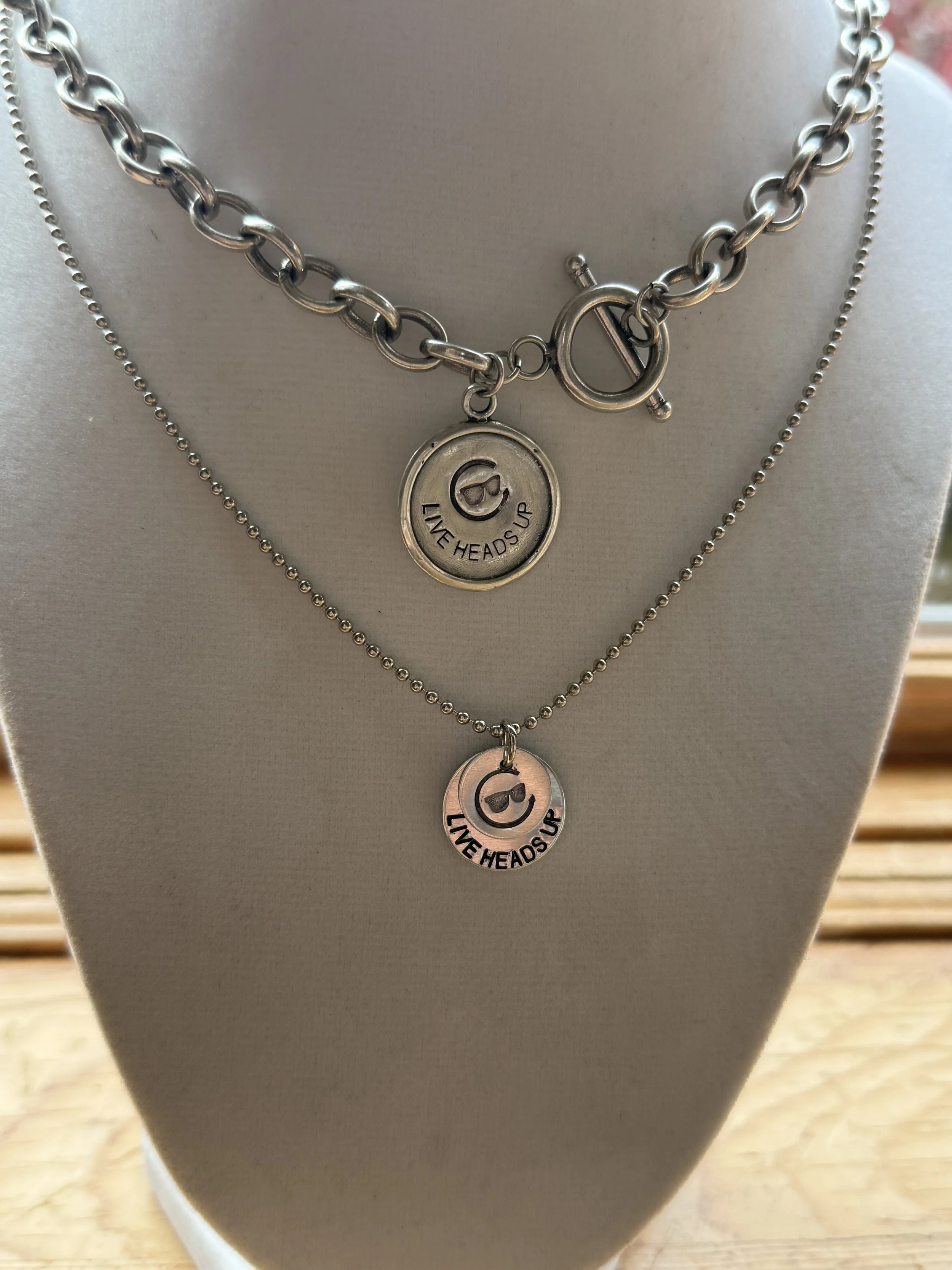 Handstamped Live Heads Up (LHU) charm necklace
